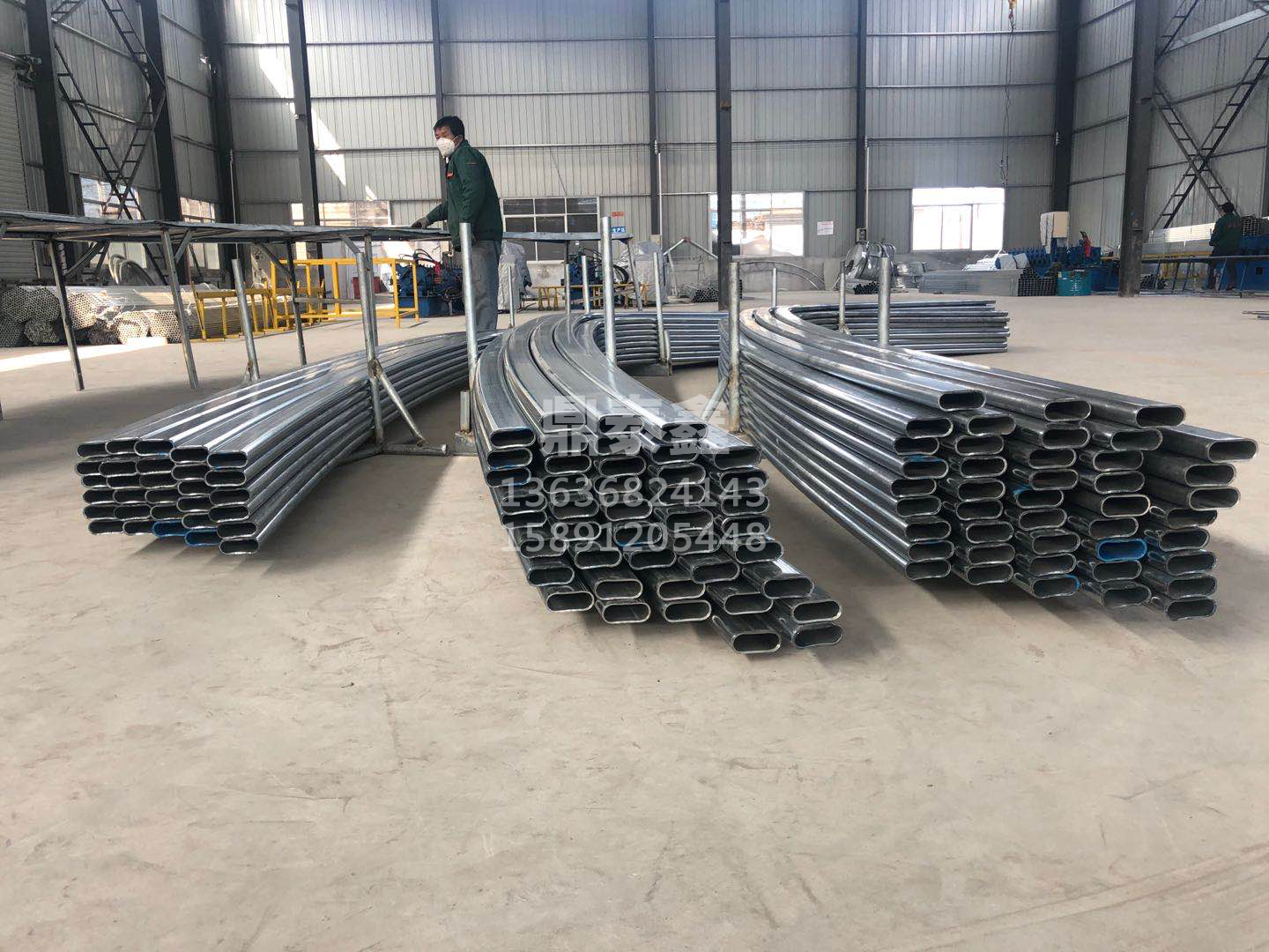 开间4米,共25间,柱间距4米,椭圆管梁间距0.8-1米,顶部按装1根椭圆管横梁。