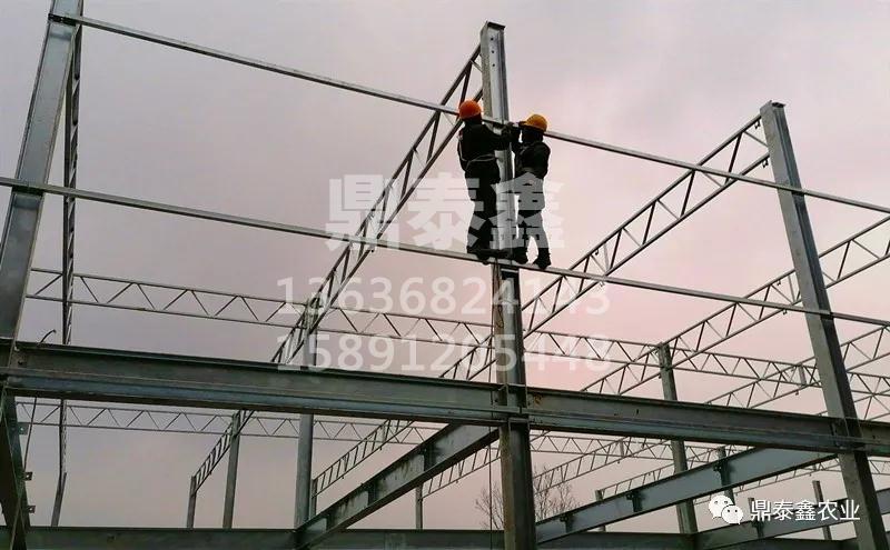 大棚立柱、维护梁、人字形梁条的主要加工工艺是定制热镀锌方管按拉深尺寸切割冲压而成。温室架梁的加工过程采用黑管焊接,一般由上、下基管、中间斜支撑和中间支撑组成。