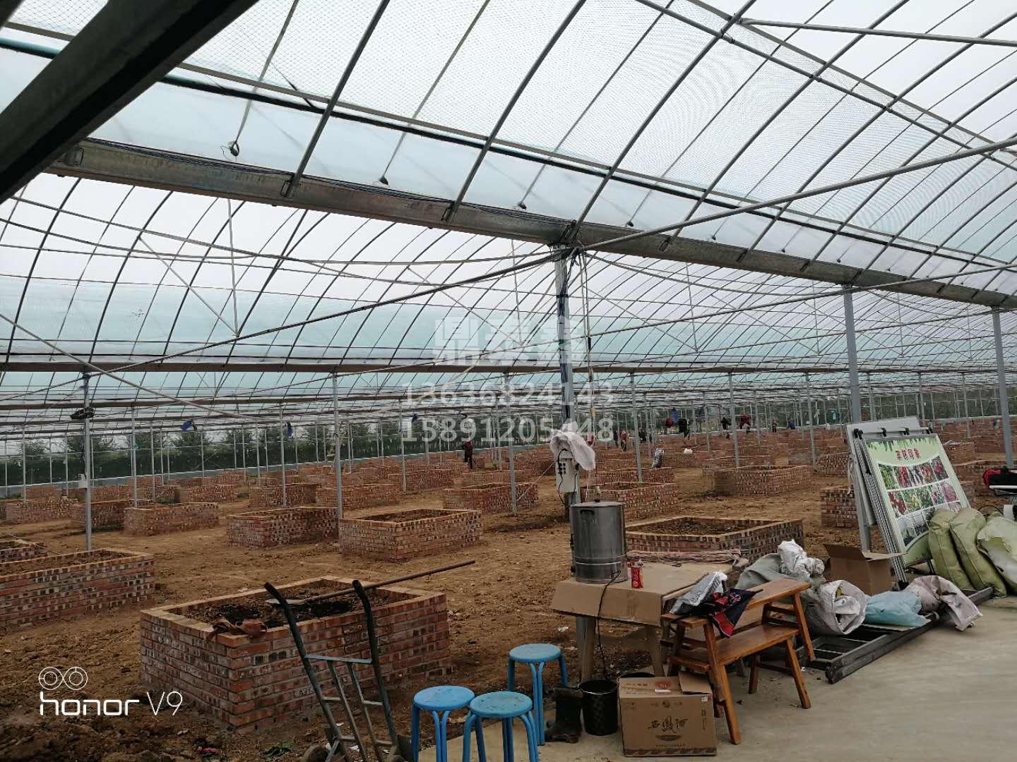 配置:其骨架采用热镀锌矩形管或圆管,顶部配有天沟,端面设置有通风窗口,与拱棚的基本结构一样。